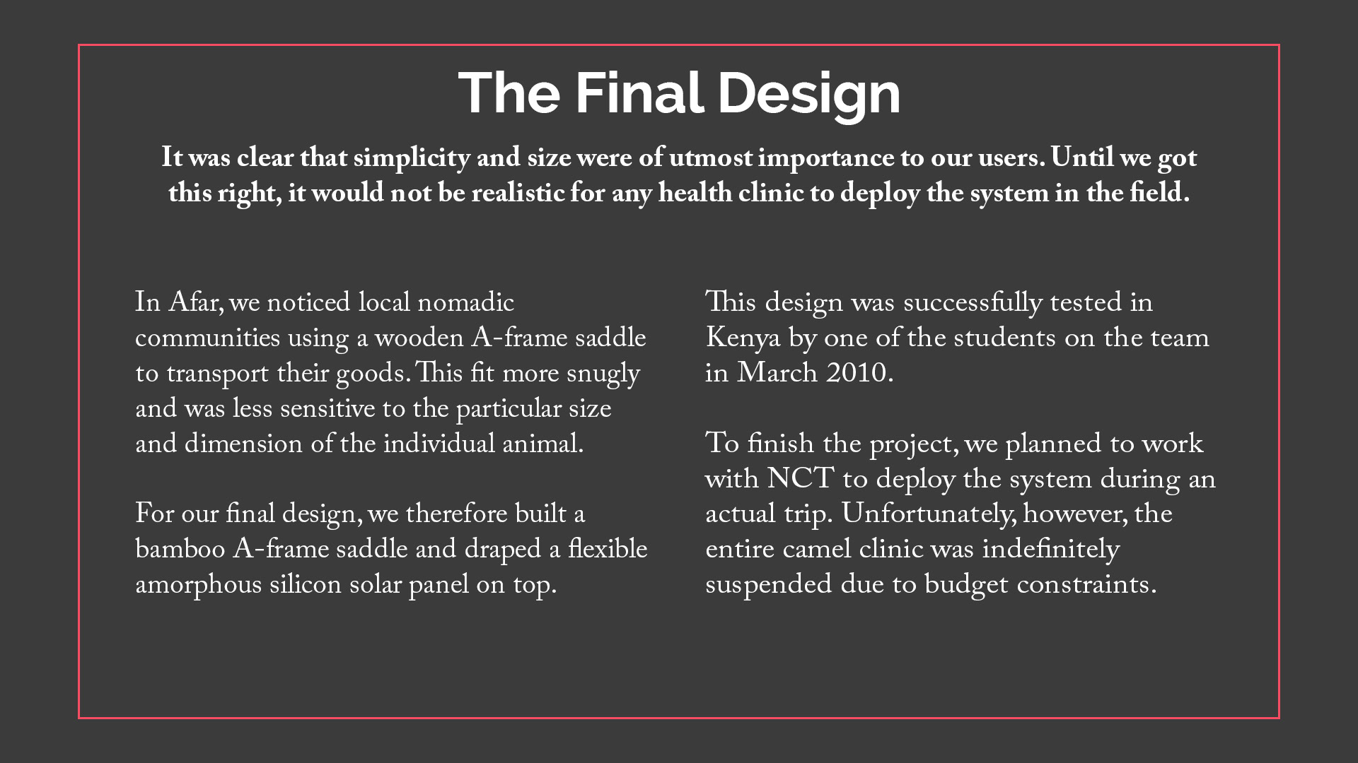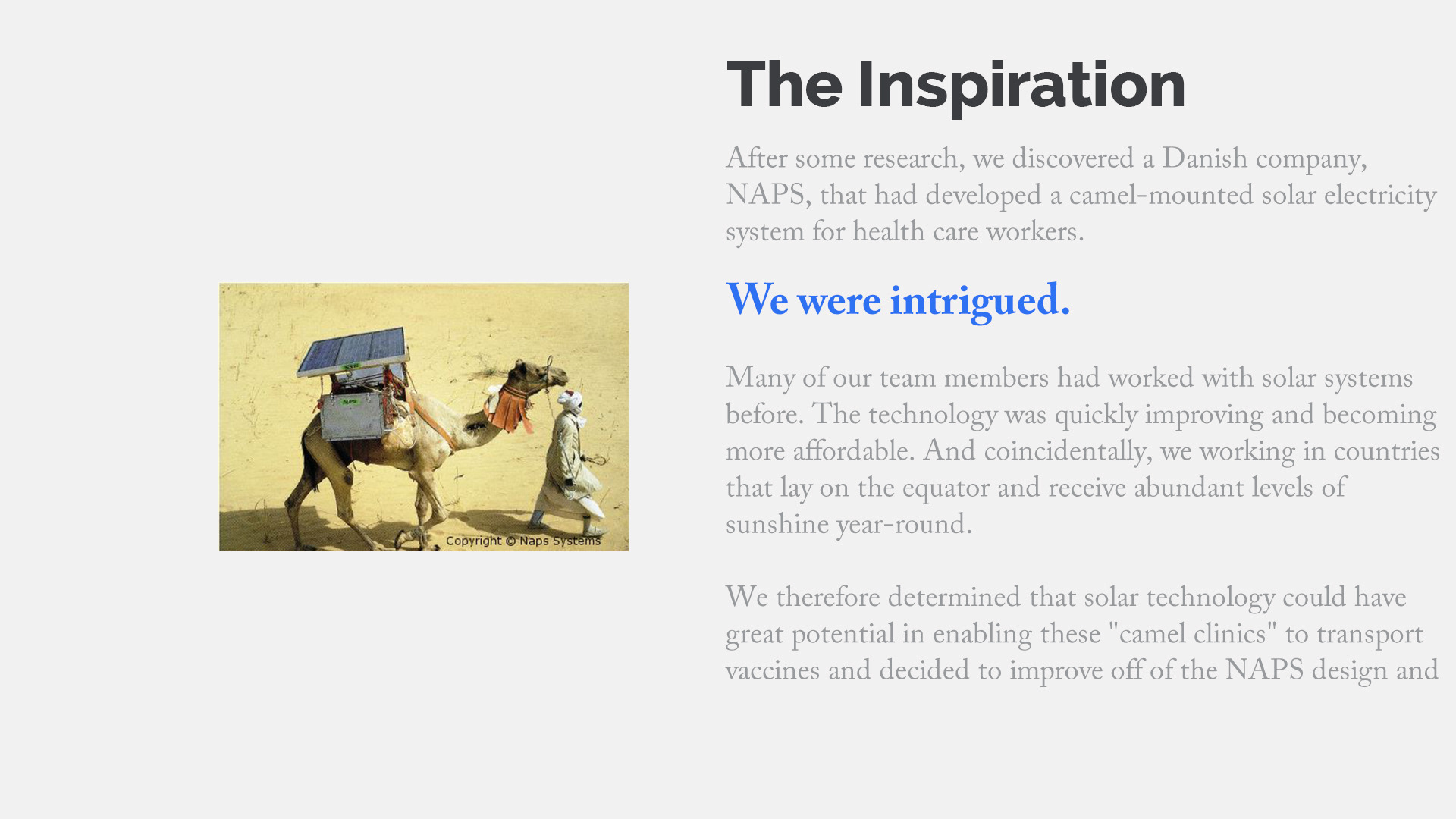 (Engineering for Change) Solar-powered refrigerators on camel back can stock African clinics